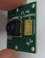 09:15, 2 June 2013 CameraModuleReplacementAlignmentTop.jpg (file) 328 KB Martin 1/3rd inch lens assembly resting on raspberry pi camera module, show the body fouls with the mini cnnector on the board. 1