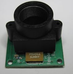Revision as of 09:15, 2 June 2013 by Martin (Talk | contribs) (1/3rd inch lens assembly resting on raspberry pi camera module, show the body fouls with the mini cnnector on the board.)