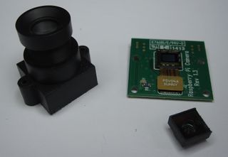 Revision as of 09:25, 2 June 2013 by Martin (Talk | contribs) (shows 1/3rd inch lens assembly (left), raspberry pi camera module with the original lens assembly removed (bottom right))